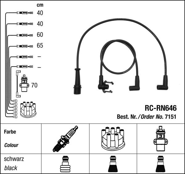 Prvotřídní kvalita NGK v provedení měděného zapalovacího kabelu s odrušovacími rezistory, kabelu s uhlíkovými rezistory nebo zapalovacího kabelu s indukčními rezistory.