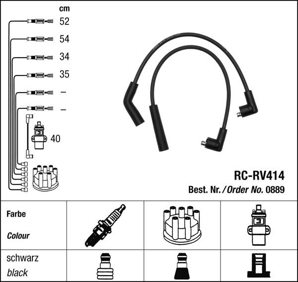 Prvotřídní kvalita NGK v provedení měděného zapalovacího kabelu s odrušovacími rezistory, kabelu s uhlíkovými rezistory nebo zapalovacího kabelu s indukčními rezistory.