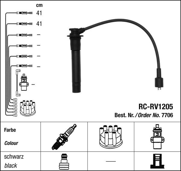 Prvotřídní kvalita NGK v provedení měděného zapalovacího kabelu s odrušovacími rezistory, kabelu s uhlíkovými rezistory nebo zapalovacího kabelu s indukčními rezistory.