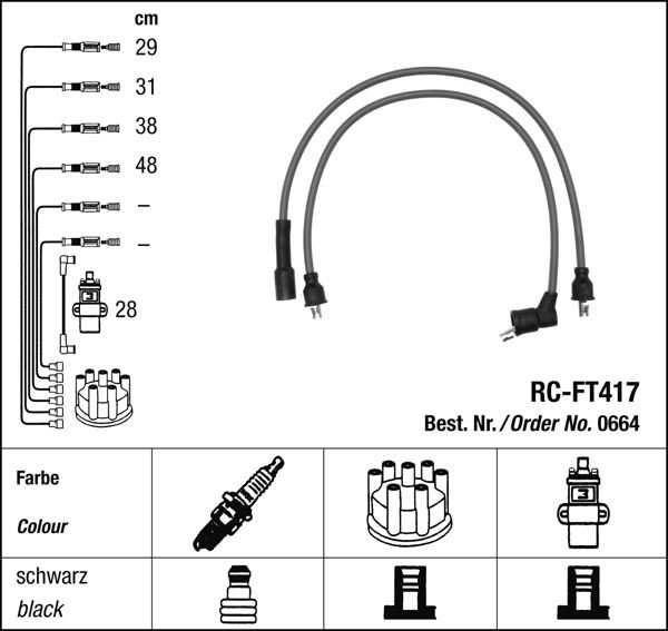 Zapalovací kabely NGK Seat Terra 0.9 (01.87-12.95) RC-FT417 664 (sada)SKLADEM532 Kč/ sada440 Kč bez DPH