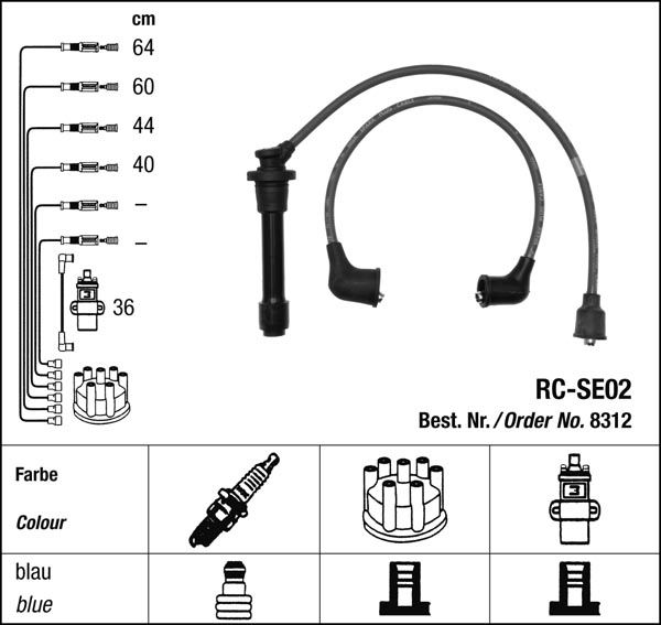 - Zapalovací kabely NGK Suzuki Baleno 1.6 (03.96-05.02) RC-SE02 8312 (sada)