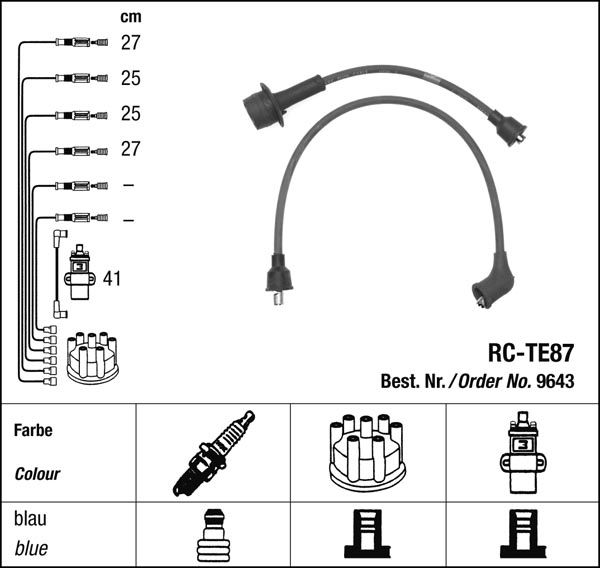 - Zapalovací kabely NGK Toyota Corolla 1.2 (08.74-07.79) RC-TE87 9643 (sada)