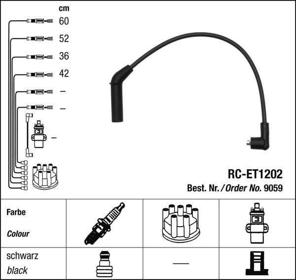 Prvotřídní kvalita NGK v provedení měděného zapalovacího kabelu s odrušovacími rezistory, kabelu s uhlíkovými rezistory nebo zapalovacího kabelu s indukčními rezistory.
