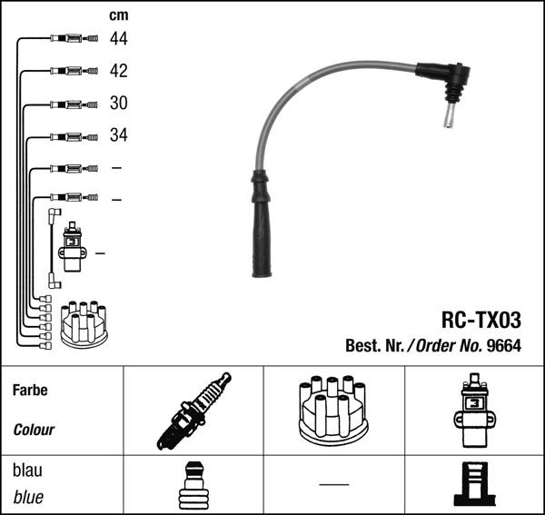 Prvotřídní kvalita NGK v provedení měděného zapalovacího kabelu s odrušovacími rezistory, kabelu s uhlíkovými rezistory nebo zapalovacího kabelu s indukčními rezistory.