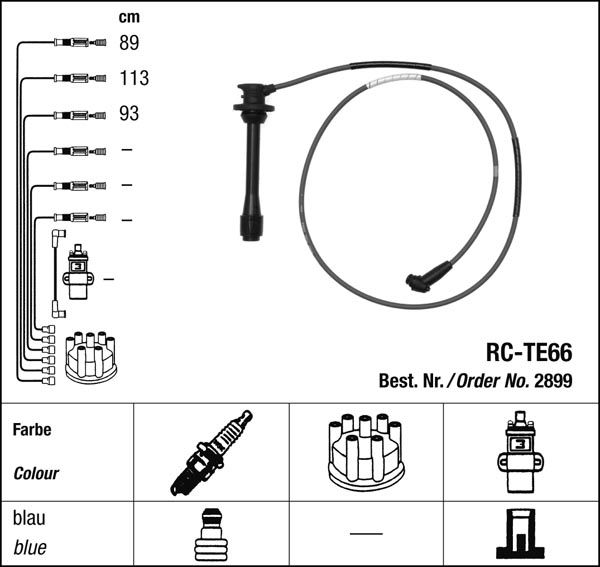 Prvotřídní kvalita NGK v provedení měděného zapalovacího kabelu s odrušovacími rezistory, kabelu s uhlíkovými rezistory nebo zapalovacího kabelu s indukčními rezistory.