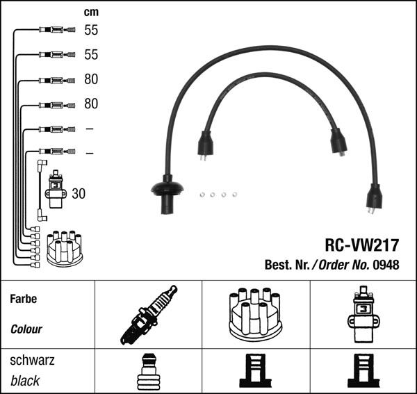 Zapalovací kabely NGK VW Brouk (Beetle) 1.6 (08.70-12.77) RC-VW217 948 (sada)