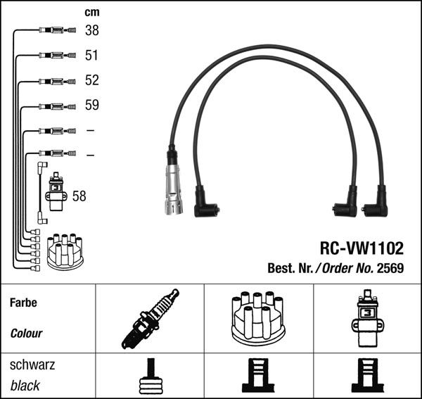 - Zapalovací kabely NGK VW Caravelle 1.6 (08.73-12.80) RC-VW1102 2569 (sada)
