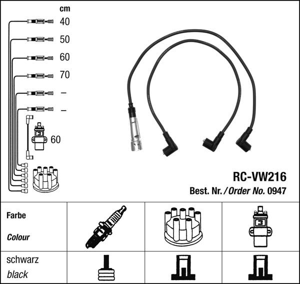 - Zapalovací kabely NGK VW Golf 1.3 (08.83-07.86) RC-VW216 947 (sada)