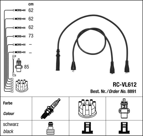 Zapalovací kabely NGK Volvo 242 2.1 (10.74-08.78) RC-VL612 8891 (sada)SKLADEM729 Kč/ sada602 Kč bez DPH