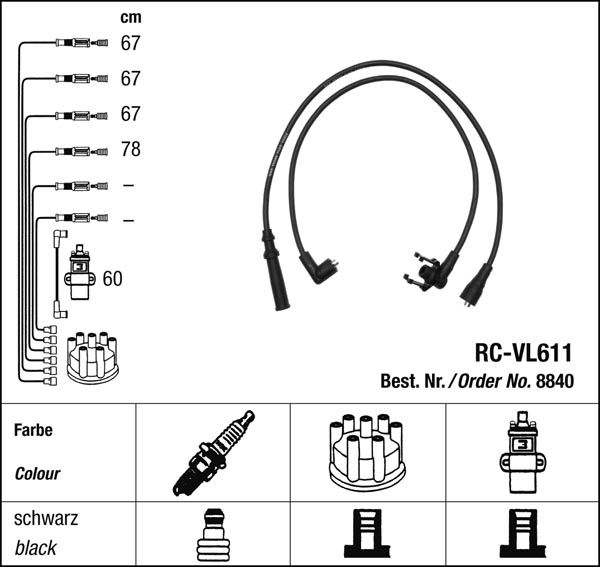 - Zapalovací kabely NGK Volvo 244 2.1 Turbo (09.80-09.82) RC-VL611 8840 (sada)