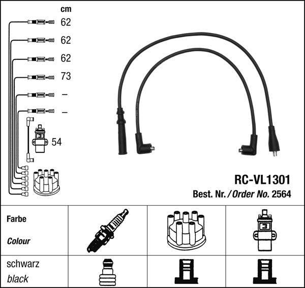 Prvotřídní kvalita NGK v provedení měděného zapalovacího kabelu s odrušovacími rezistory, kabelu s uhlíkovými rezistory nebo zapalovacího kabelu s indukčními rezistory.