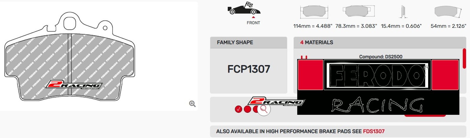 Závodní destičky DS3.12 Ferodo racing FCP1307GDo týdne7 886 Kč/ sada6 517 Kč bez DPH