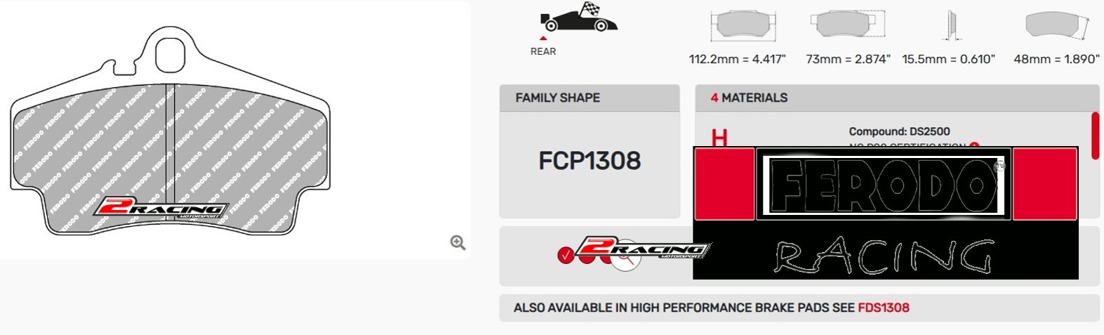 Závodní destičky DS3.12 Ferodo racing FCP1308GDo týdne7 231 Kč/ sada5 976 Kč bez DPH